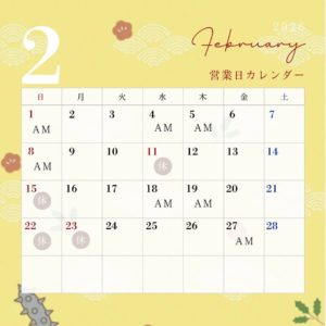 こんにちは!みゆきデンタルクリニックです🦷✨ 遅くなりましたが、2月の休診日のお知らせです📢「休」が1日休診日「AM」が午前中診療日です。 水曜日が院内勉強会のため午後休診木曜日と日曜日が基本的に休診日となっております。(第二、第四木曜日、今月は第一、第二日曜日は午前中診療)また祝日のある週の木曜日…